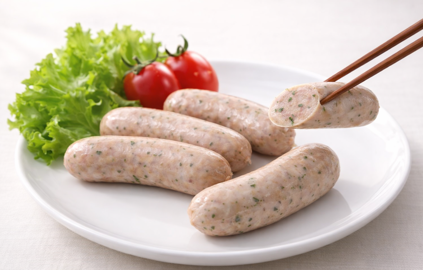 日本三大ねぎの1つで、甘みたっぷりの岩津ねぎ(朝来産)をウインナーに練り込みました。ノンスモークタイプです。